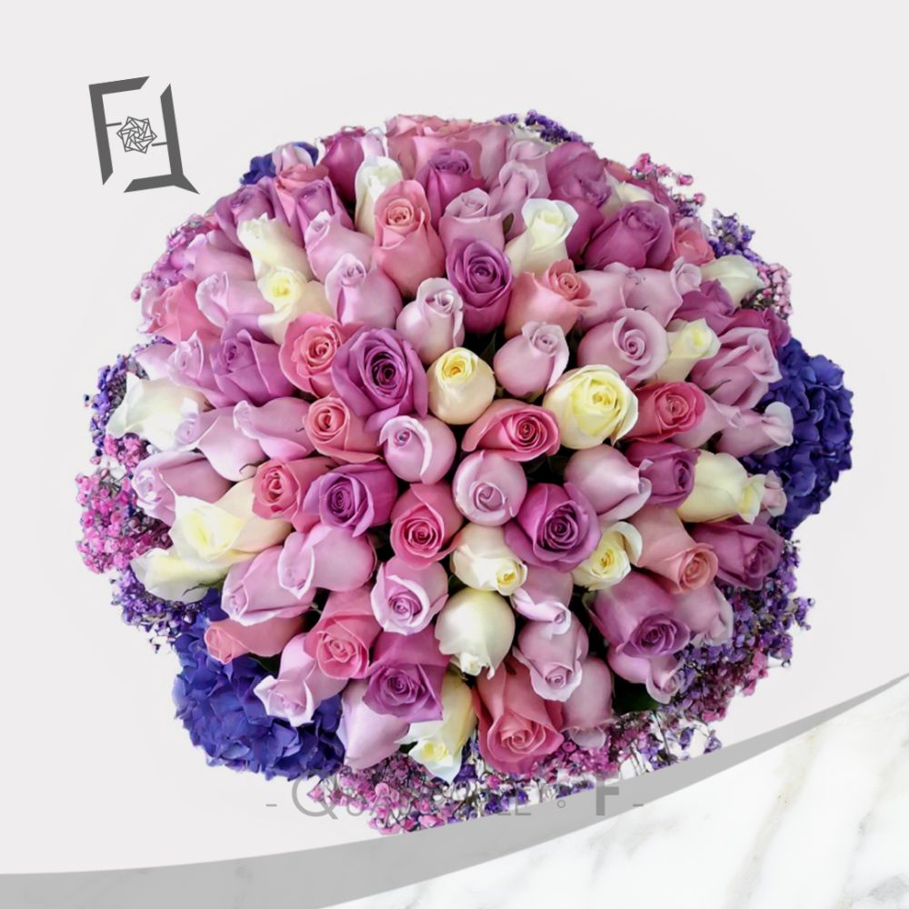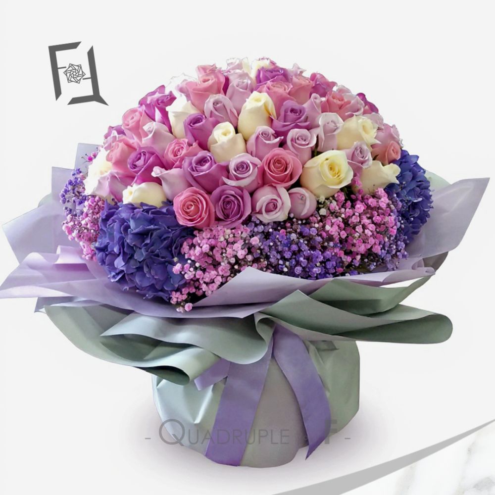 **Romance Symphony — 99 Mixed Pink, Purple & White Roses