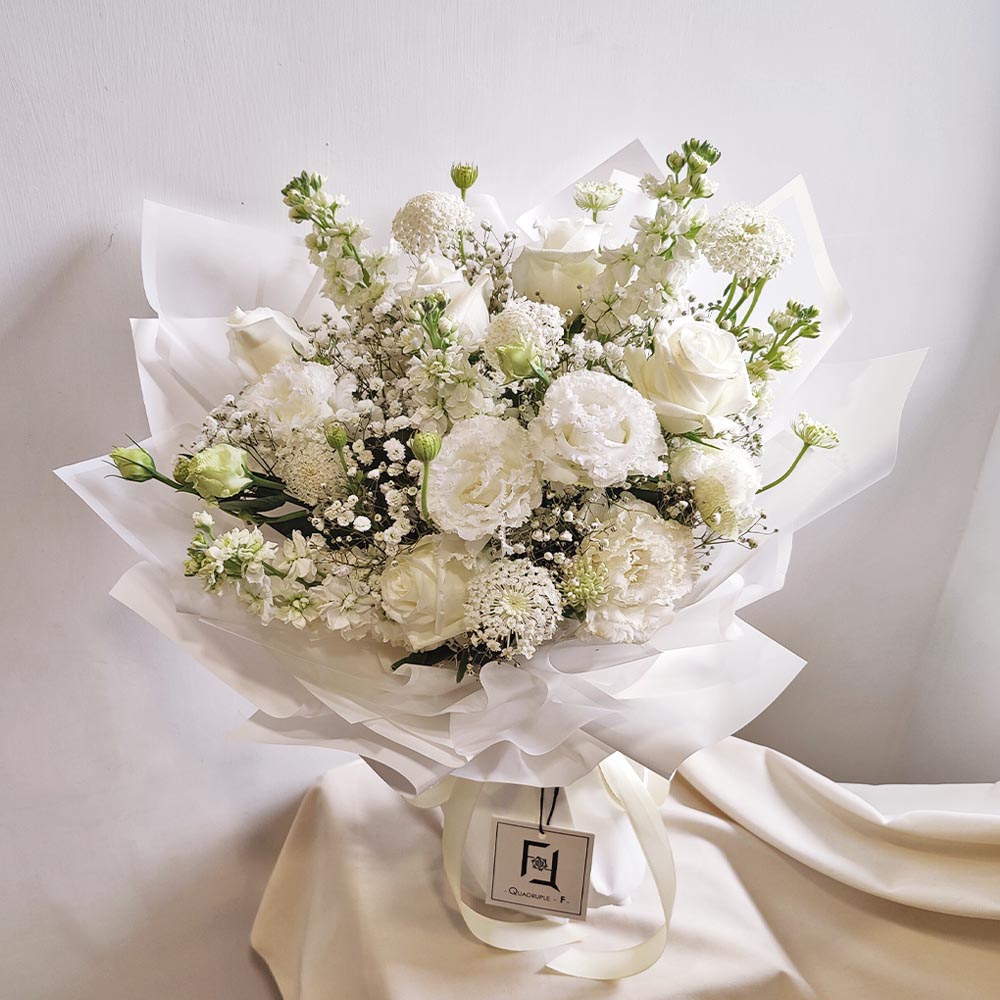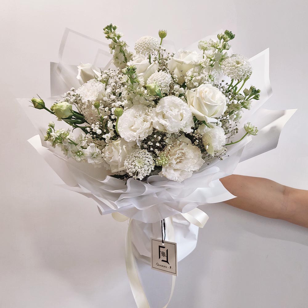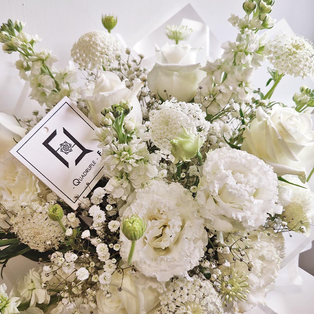 在香港花店 QuadrupleFlower,我們始終堅信花藝不只是追求繁複的裝飾,而是一份能觸動心靈、傳遞真誠無偽情感的故事。這束「凝白之約」不僅是一份簡約的禮物,更是一種代表著理解與包容的心意對話。我們的花藝團隊用心雕琢每一個留白與線條,將大自然最純粹的模樣為你保留。立即透過網上訂購,讓我們為你將這份脫俗的清新與真摯,親手送達她手中。