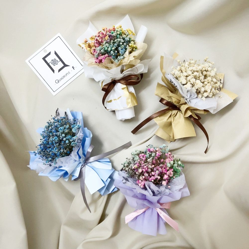 每一束花,都是時間的印記。Quadruple Flower 為你呈現「滿天星乾花花束」,以自然風乾法製作而成,讓花束不僅是一份花藝作品,更是一段歲月的故事。