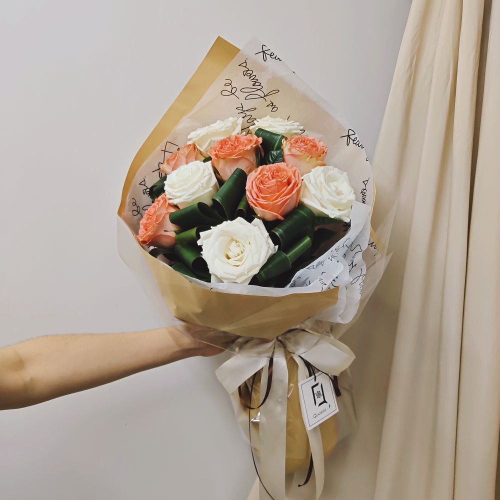 在 Quadruple Flower Hong Kong,我們相信花束是一份浪漫的故事。白玫瑰橙玫瑰花束,以白與橙交織,延續愛與希望的傳說,成就香港最清新的浪漫禮物。
