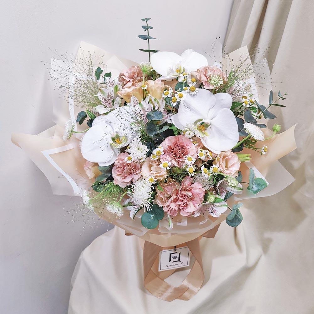 在香港花店 Quadruple Flower,我們相信花藝不只是裝飾,而是一份能觸動心靈的故事。這束花不僅是一份禮物,更是一種心意。我們致力於將大自然最真實的模樣帶入您的生活。在我們新蒲崗的工作室裡,團隊悉心搭配這些充滿治癒力量的花材,堅持呈現乾淨通透的自然美。這款「晨光蘭語」是母親節或探訪摯友的絕佳禮物,讓這份溫暖的自然氣息,陪伴他們度過每一個愜意的日常。