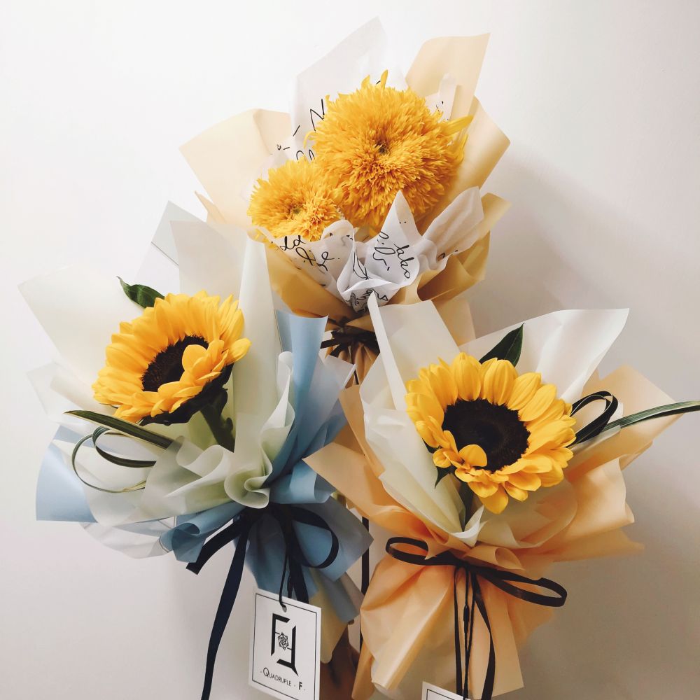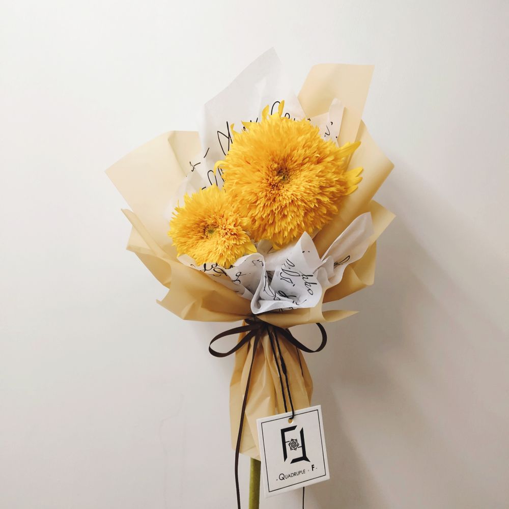 在 Quadruple Flower Hong Kong,我們相信花束不只是花材的組合,而是一份能觸動心靈的故事。重瓣向日葵花束(單支),以鮮亮的黃色與自然牛皮紙交織,延續愛與希望的傳說,成就香港最獨特的 畢業花束 與浪漫禮物。