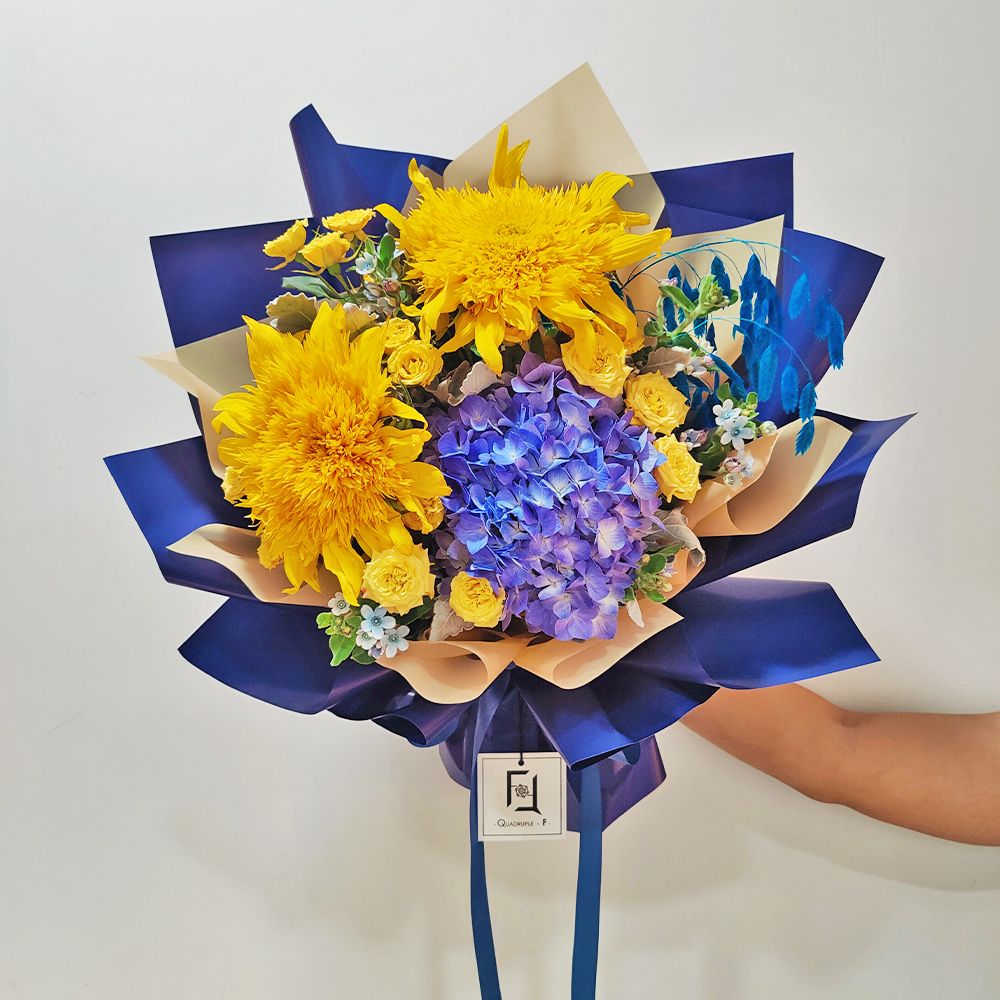 在 QuadrupleFlower,我們樂於挑戰色彩的無限可能。在香港花店 QuadrupleFlower,我們相信花藝不只是裝飾,而是一份能觸動心靈的故事。這束花不僅是一份禮物,更是一種對自由與陽光的熱切嚮往。