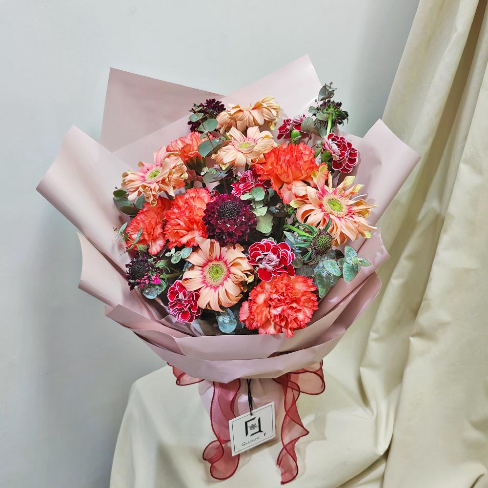 在 Quadruple Flower,我們鼓勵用花藝展現最真實的個性。在香港花店 Quadruple Flower,我們相信花藝不只是循規蹈矩的裝飾,而是一份能觸動心靈、讚頌女性獨立與熱情的故事。這束「焰火燃情」是我們對現代母愛的致敬。每一朵充滿生命力的鮮花,都是 Quadruple Flower 對天下充滿活力的母親的熱烈喝采。透過這份極具現代感與生命力的禮物,讓您的母親感受到您對她活出精彩人生的全力支持與感恩。