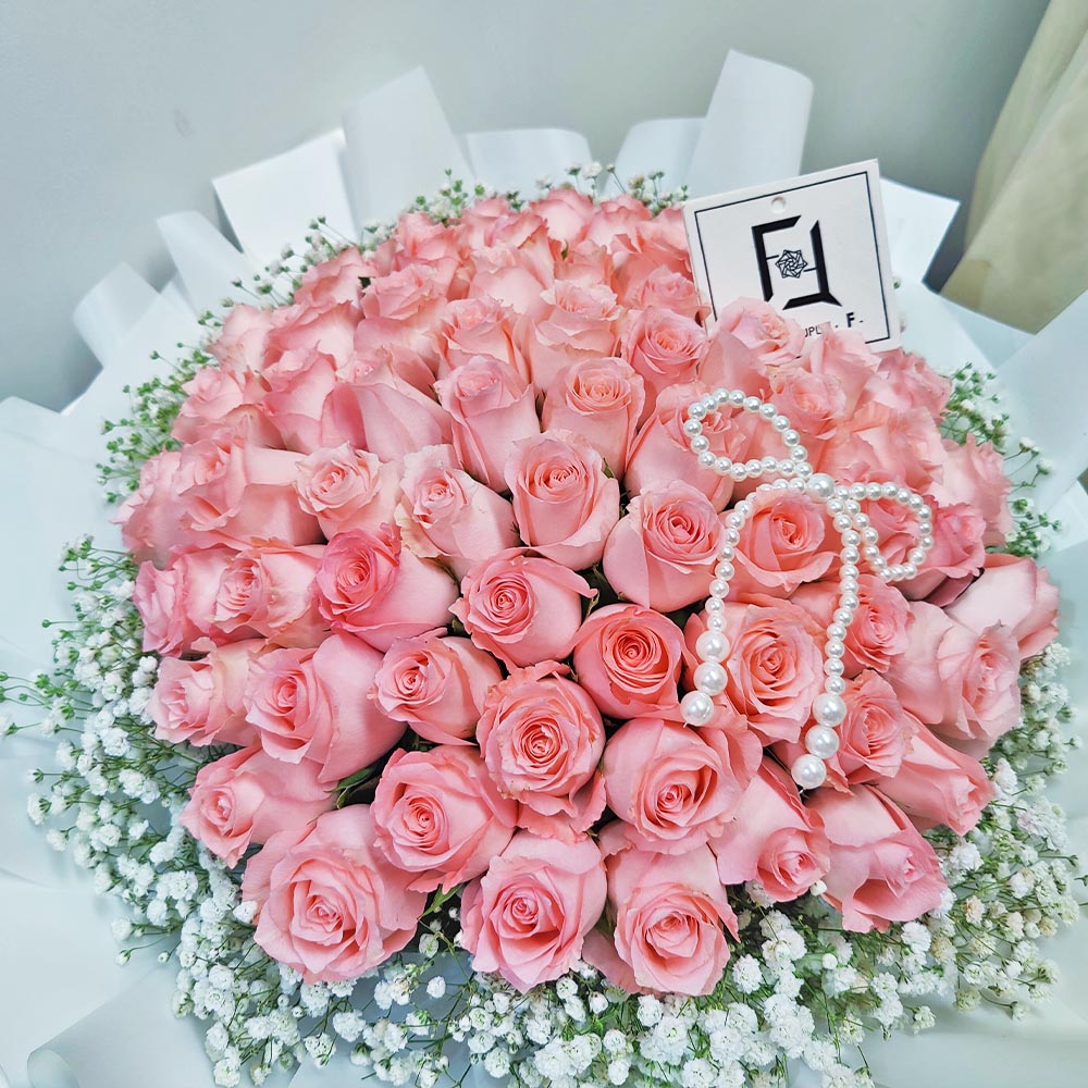 粉紅玫瑰,沒有紅玫瑰那般咄咄逼人的狂熱,卻多了一份歷久彌新的溫柔、優雅與初戀般的甜蜜。我們嚴選花苞飽滿、花瓣層次豐富的粉紅玫瑰,當 66 朵玫瑰匯聚成一片粉色的花海,彷彿將整個春日的浪漫都凝結於此。微風拂過,玫瑰散發出淡淡的、令人沉醉的天然幽香,這不僅是一場視覺的盛宴,更是一次觸動靈魂的嗅覺體驗。