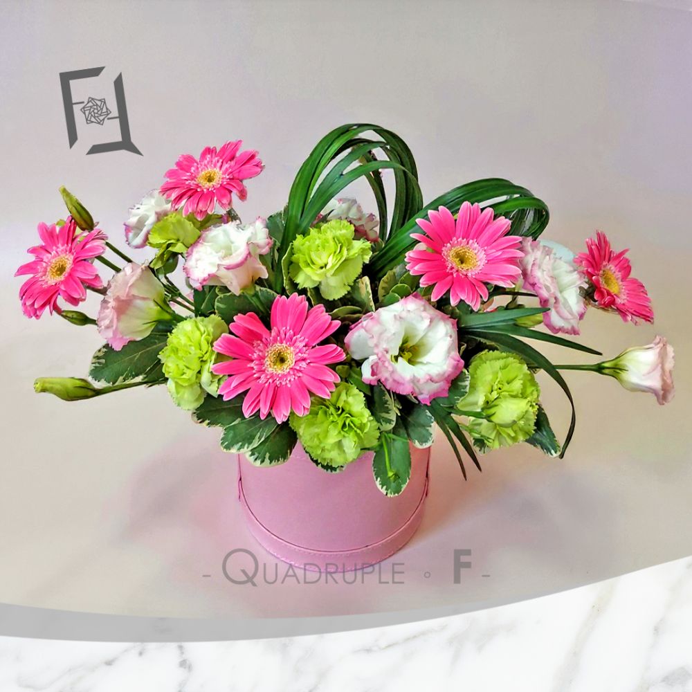 在喜悅的時刻裡,鮮花始終是最動人的語言。Quadruple Flower 推出的 粉紅小太陽花枱花鮮花花桶,以粉嫩的非洲菊搭配清新的綠色襯花,營造出活力與溫柔並存的氛圍。粉紅色花桶設計時尚大方,簡約卻不失精緻,讓整體更顯清新亮麗。