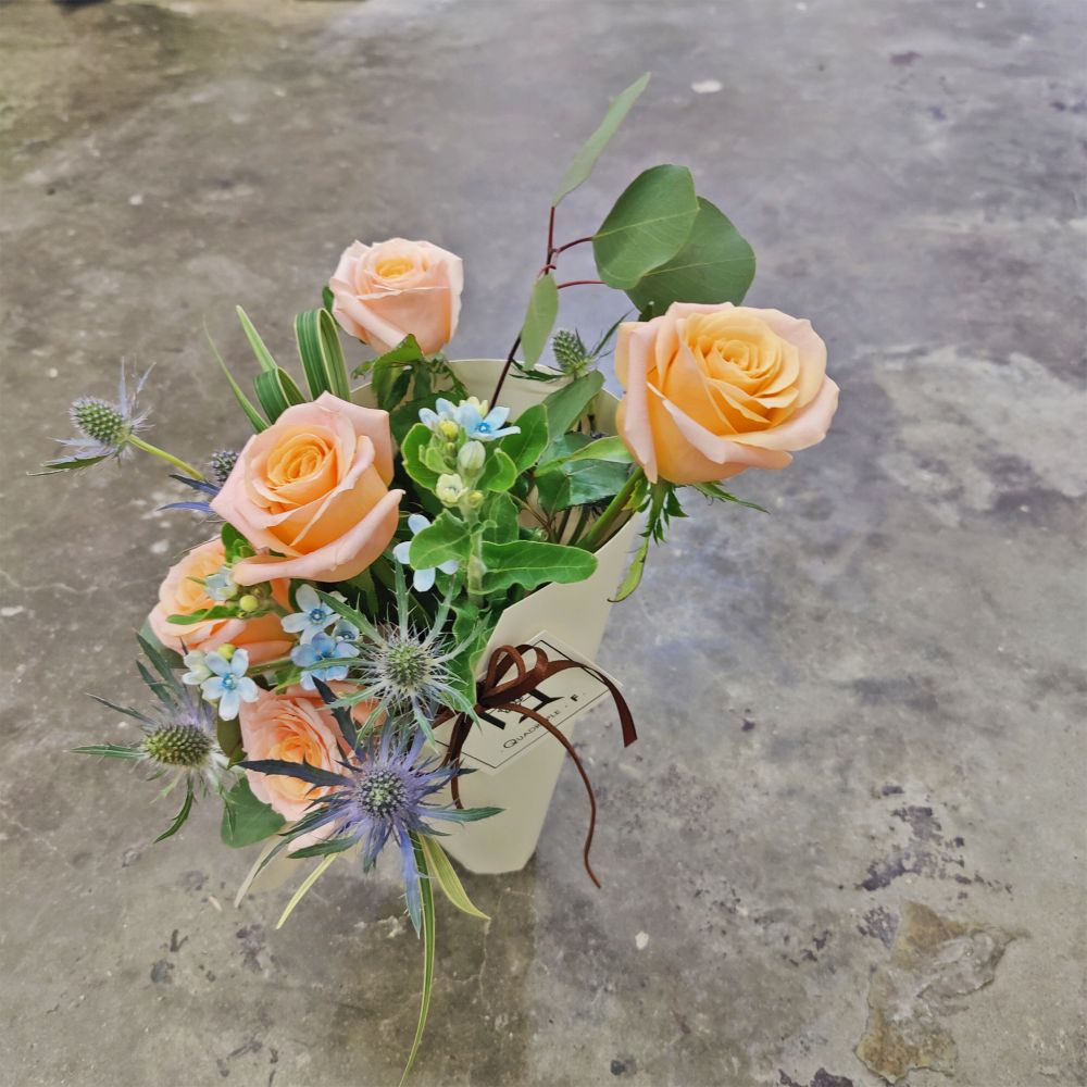 在 Quadruple Flower Hong Kong,我們相信花束是一份浪漫的故事。香檳玫瑰花桶枱花,以香檳與藍交織,延續愛與浪漫的傳說,成就香港最驚艷的浪漫禮物。