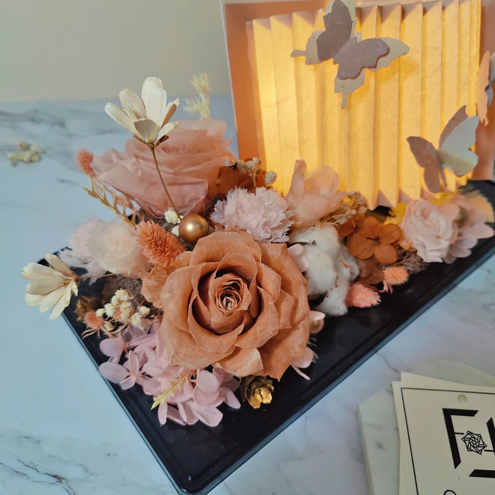 永生花象徵恆久不變的心意,搭配獨特的書本造型燈籠,讓禮物更添故事感與收藏價值。選擇這款花盒,便是選擇一段能長久保存的浪漫篇章,讓愛與美麗在時光中靜靜綻放。