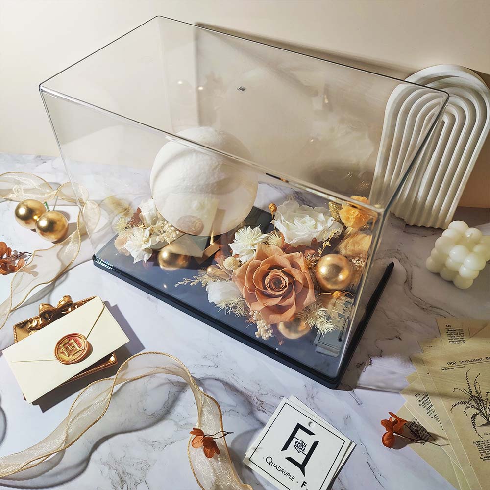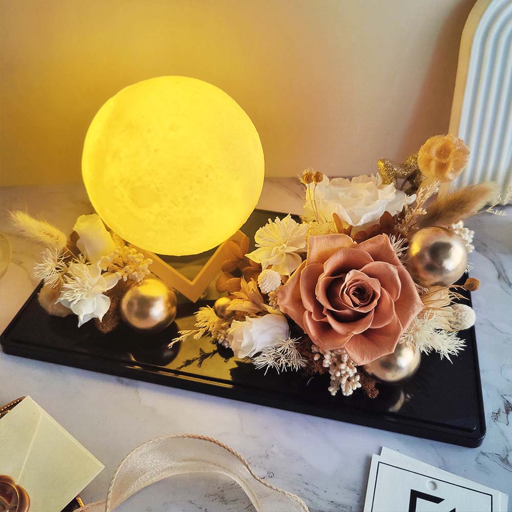 在香港花店 QuadrupleFlower,我們始終相信,花藝不只是單純的空間裝飾,而是一份能觸動心靈、跨越時間長河的動人故事。這款月亮燈花盒不僅是一份精緻的禮物,更是一種無聲卻深情的守候。QuadrupleFlower 的花藝師以匠心獨運的手法,將您藏於心底的牽掛與祝福,封存在這些永不凋零的花朵中。當對方在無數個深夜亮起這盞燈時,便能感受到您如影隨形的溫暖陪伴。這不只是一份送給摯愛的週年紀念或生日驚喜,更是 QuadrupleFlower 幫您將一瞬的感動,化作長久相伴的永恆心意。
