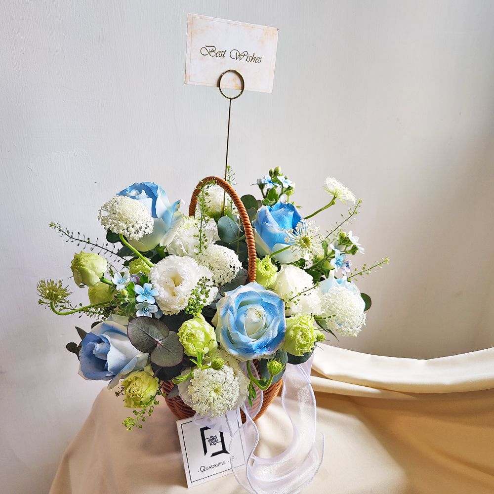 QuadrupleFlower 相信,每一種顏色都有其治癒靈魂的力量。在香港花店 QuadrupleFlower,我們深信花藝不只是稍縱即逝的綻放,而是一份能觸動心靈、讓思緒平靜下來的故事。這籃「蔚藍星願」代表了我們對寧靜美學的追求。我們用心搭配每一朵花材,只為幫您在對方的桌畔,留下一片專屬的蔚藍星空。透過我們專業的送遞服務,讓這份充滿驚喜與平靜的禮物,完美表達您的獨特品味。